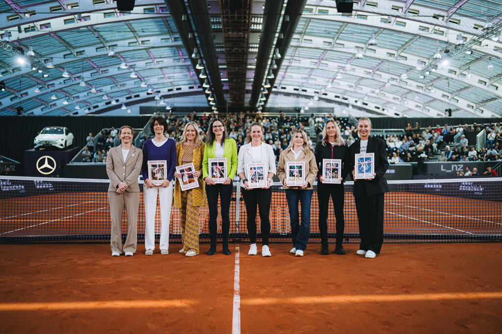 To mark the 35th anniversary of the Upper Austria Ladies Linz, tournament director Sandra Reichel and tournament ambassador Barbara Schett invited former Austrian players from the last 35 years to the Design Centre.