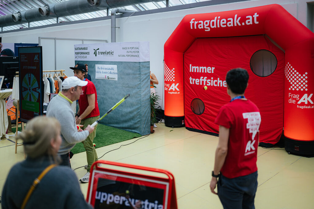 Tennis fans can also let off steam at the Upper Austrian Chamber of Labour stand in the Public Area: Everyone can put their skills to the test at the goal kicking wall and table football. As if that wasn't enough, there are also various competitions. Feel free to drop by!